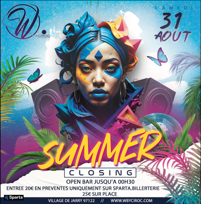 💥💥 SUMMER CLOSING !! 💥💥 Afin de vous remercier de votre fidélité et pour clôturer l’été en beauté, nous vous offrons un OPEN BAR pendant 1h30 ! 🍾 OPEN BAR de 23h00 à 00h30 ! 🔥 Entrée : 20€ en prévente sur Sparta 💙 25€ sur place. Réservation de table au 0690 50 35 59.