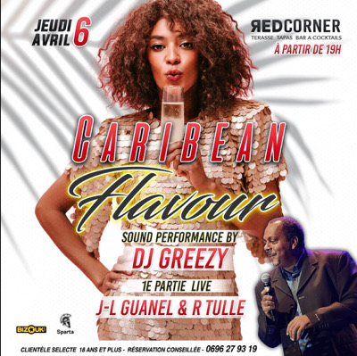 *📆 Jeudi 06 Avril 2023* dès 19h, On vous attend au *📍REDCORNER* pour la soirée *🌴CARIBEAN FLAVOUR🌴* En 1er partie (20h) *JL GUANEL 🎤* et *R TULLE 🎹* en Live. *🎧Dj GREEZY* aux platines pour t'ambiancer le reste de la soirée. 🥰❤🔥 *🍱Restauration sur place 🥩 🍢* Clientèle Sélecte au rendez-vous alors *✨Réserve ton Salon ✨* 0696.013385 0696.279319 ```Venez vous Ambiancer au 📍REDCORNER``` _⚠️La direction se réserve EXCLUSIVEMENT le droit d'entrée._ *_⚠️⚠️ Conseils : Arriv...