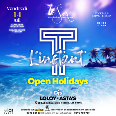 Rejoins le cercle de L'instant T... Vendredi 14 Juillet, OPEN HOLIDAYS G00D VIBES ONLY BY Dj LOLOY x Dj ASTA'S Clientèle multigénérationelle Happy Hour jusqu'à 21h30 1 MOJITO ACHETÉE = 1 OFFERT 0696 051 531 - 0696 790 787 (Seulement sur WhatsApp)