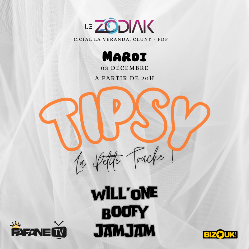 MARDI, la grosse équipe est de sortie pour la *TIPSY* #TonRdvDuMardi WILL’ONE - BOOFY - JAMJAM #LaPetiteTouche CHICHA - FOOD & SON POUR LA NATION.