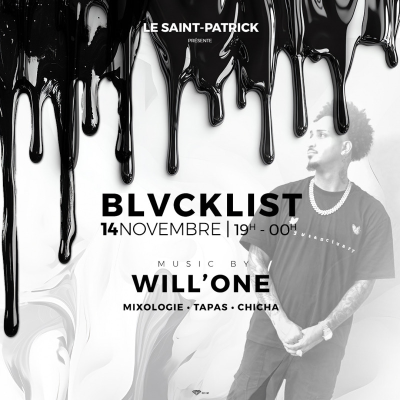 Ce jeudi 14 novembre BLVCKLIST Plongez au cœur de la Blvcklist, un événement exclusif avec DJ WILL ONE Un goût d’interdit, du noir et des cocktails signature. Dress code: Blvck Invitation bizouk valable jusqu’à 21h30 Réservation au 0696 86 39 50 St Patrick’s Bar : Cc Didier Plaza - Route de Didier - FdF