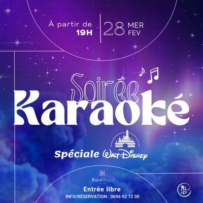 Karaoké night spécial Disney Bienvenue chez Disney, rien de tel pour se replonger dans les rires et les souvenirs de son enfance avec ses potes. Comme tous les jours au Blackwood, pas de jugement sauf celui de l’amusement