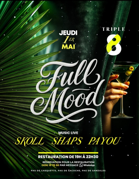 JEUDI 01 MAI ton rdv du jeudi de 18h30 à 00h!! Full Mood •••••••••••••••••••••••••••••••#OuvertureDesPortes 18h30Restauration à table disponible de 18h30 à 21h30 puis snacking de 21h30 à 00h.TRIPLE8 TENUES ET ESPRITS CORRECTS EXIGÉS;LA DIRECTION SE RÉSERVE LE DROIT D'ENTREE. Il est conseillé d'arriver tôt car une invitation ne garantit pas le droit d'accès et privilégier le covoiturage
